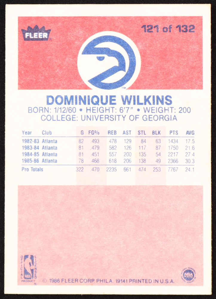 Dominique Wilkins 1986-87 Fleer #121 RC