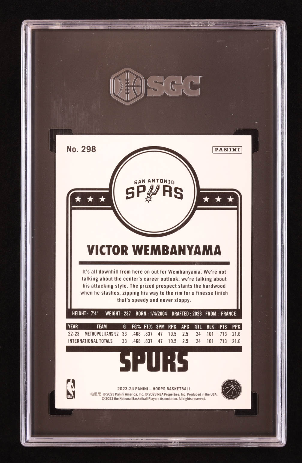 Victor Wembanyama 2023-24 Hoops #298 RC (SGC 9.5)