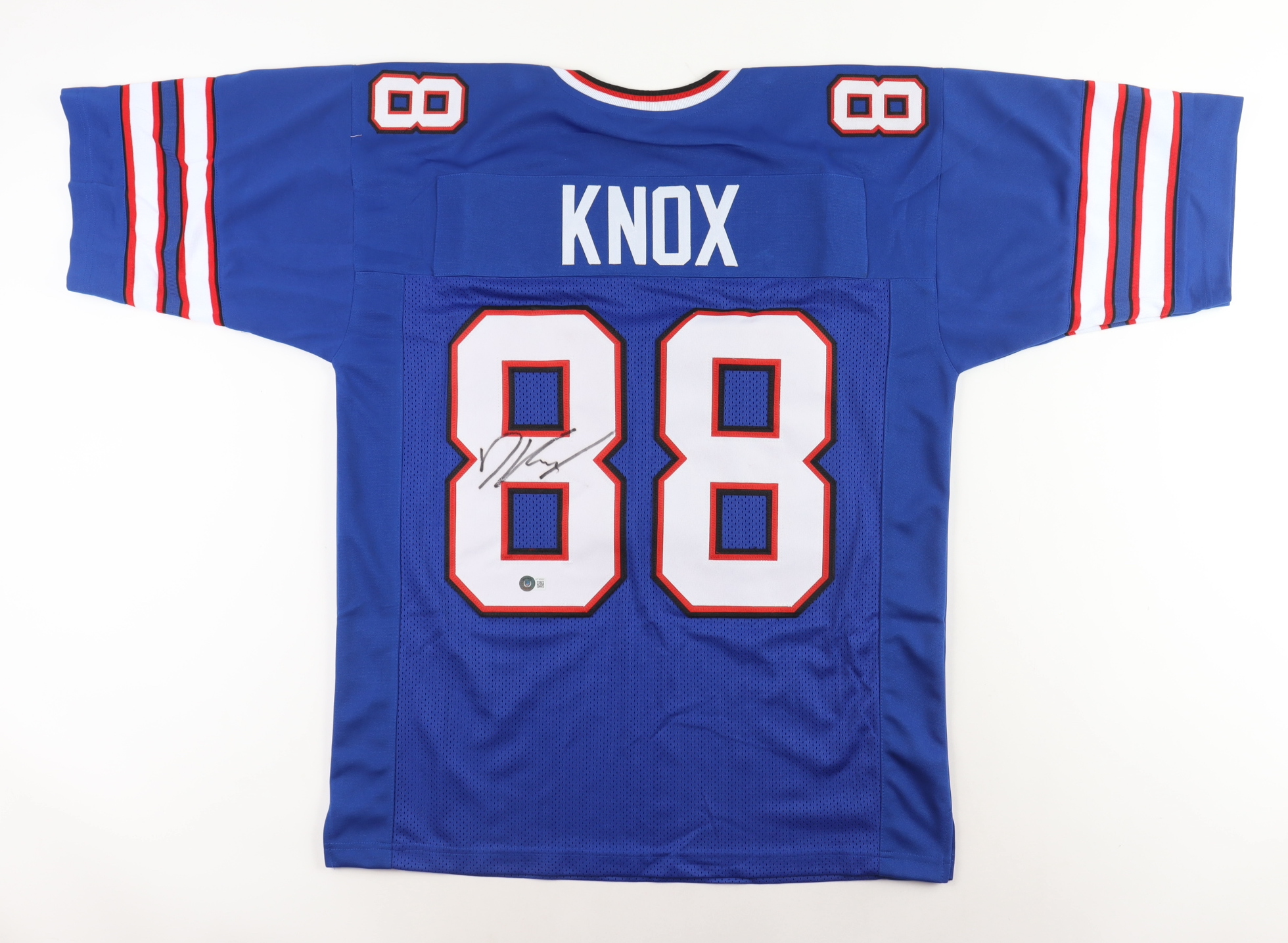 Custom jersey with everything sewn on, size XL. Hand-signed by Dawson Knox.