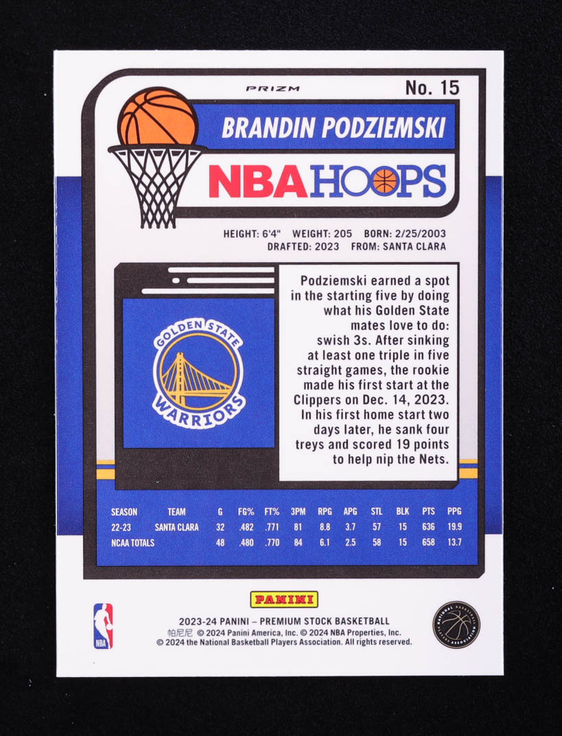 Brandin Podziemski 2023-24 Hoops Premium Stock Ice Prizm #15 RC