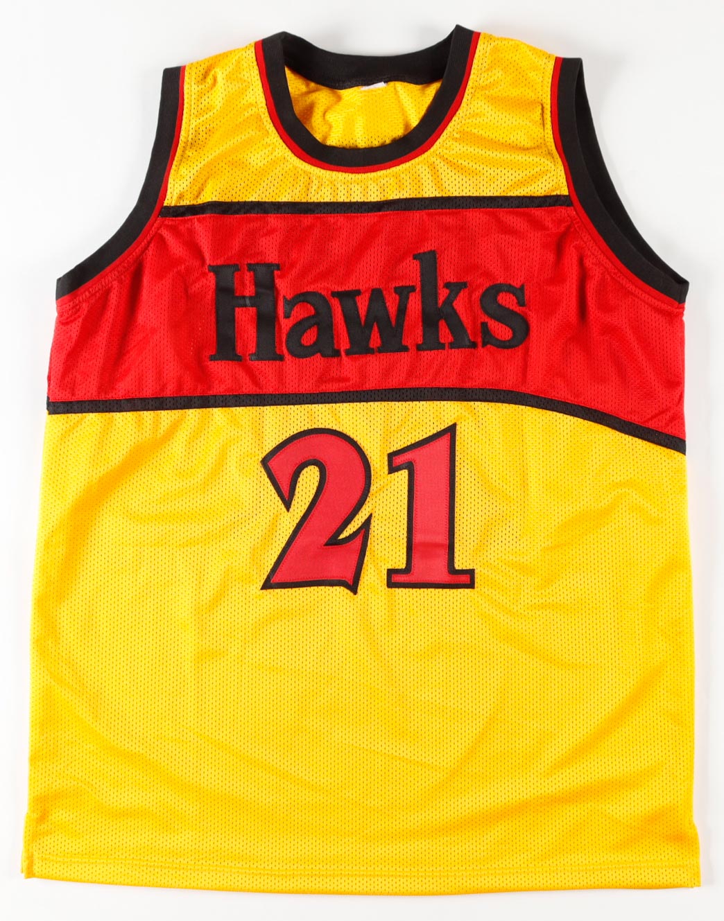 Custom jersey with everything sewn on, size XL. Hand-signed by Dominique Wilkins (HOF).