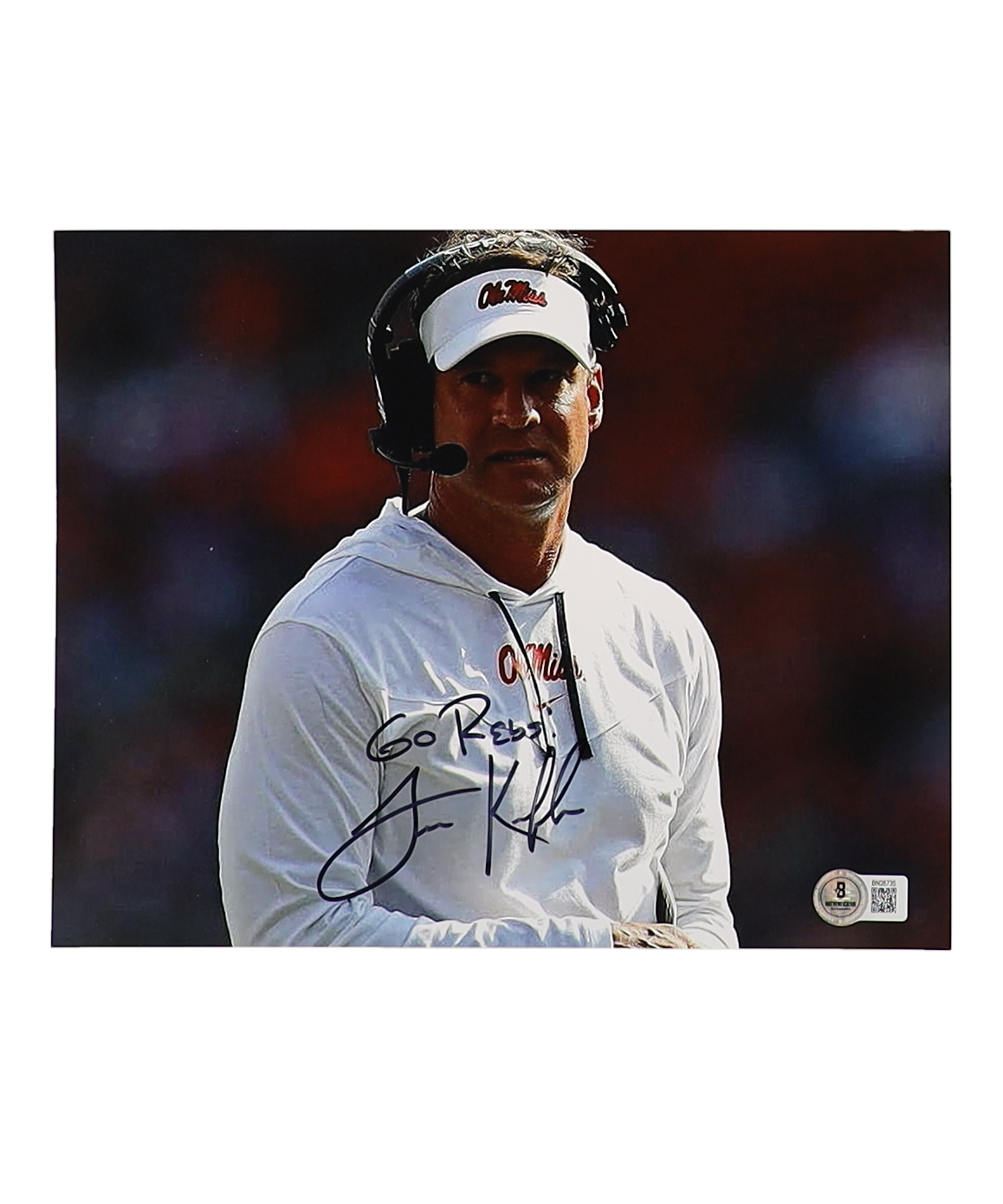 Lane Kiffin Signed Ole Miss Rebels 8x10 Photo Inscribed "Go Rebs!" (Beckett)