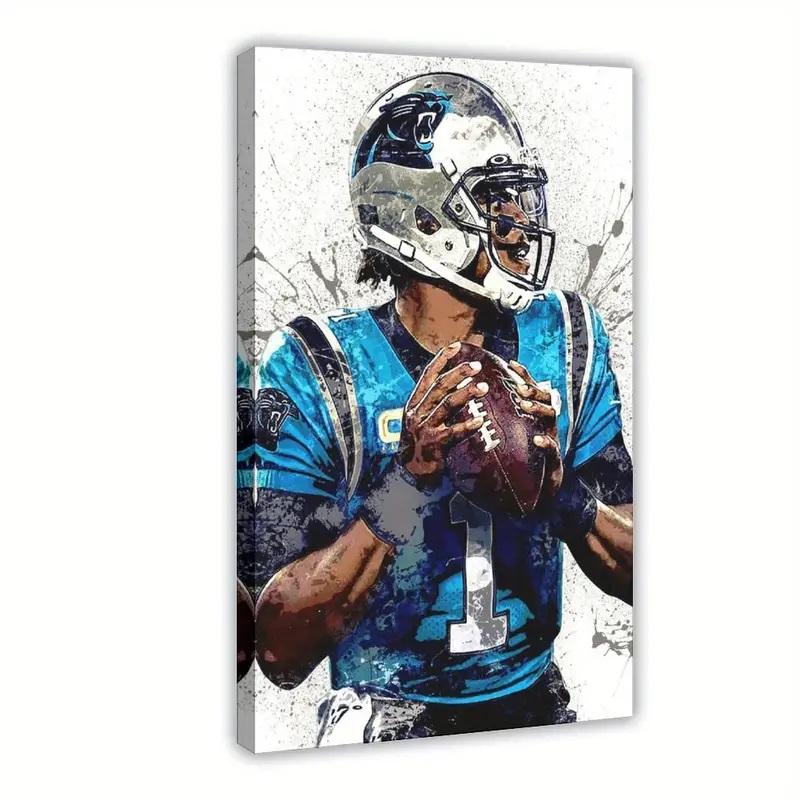 Image printed on canvas measures 16" x 24" in size and features Cam Newton (Carolina Panthers). Please note, this item is unsigned. Image is printed on quality canvas and finished with protective coating to prevent exterior damage.