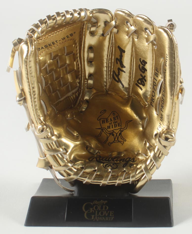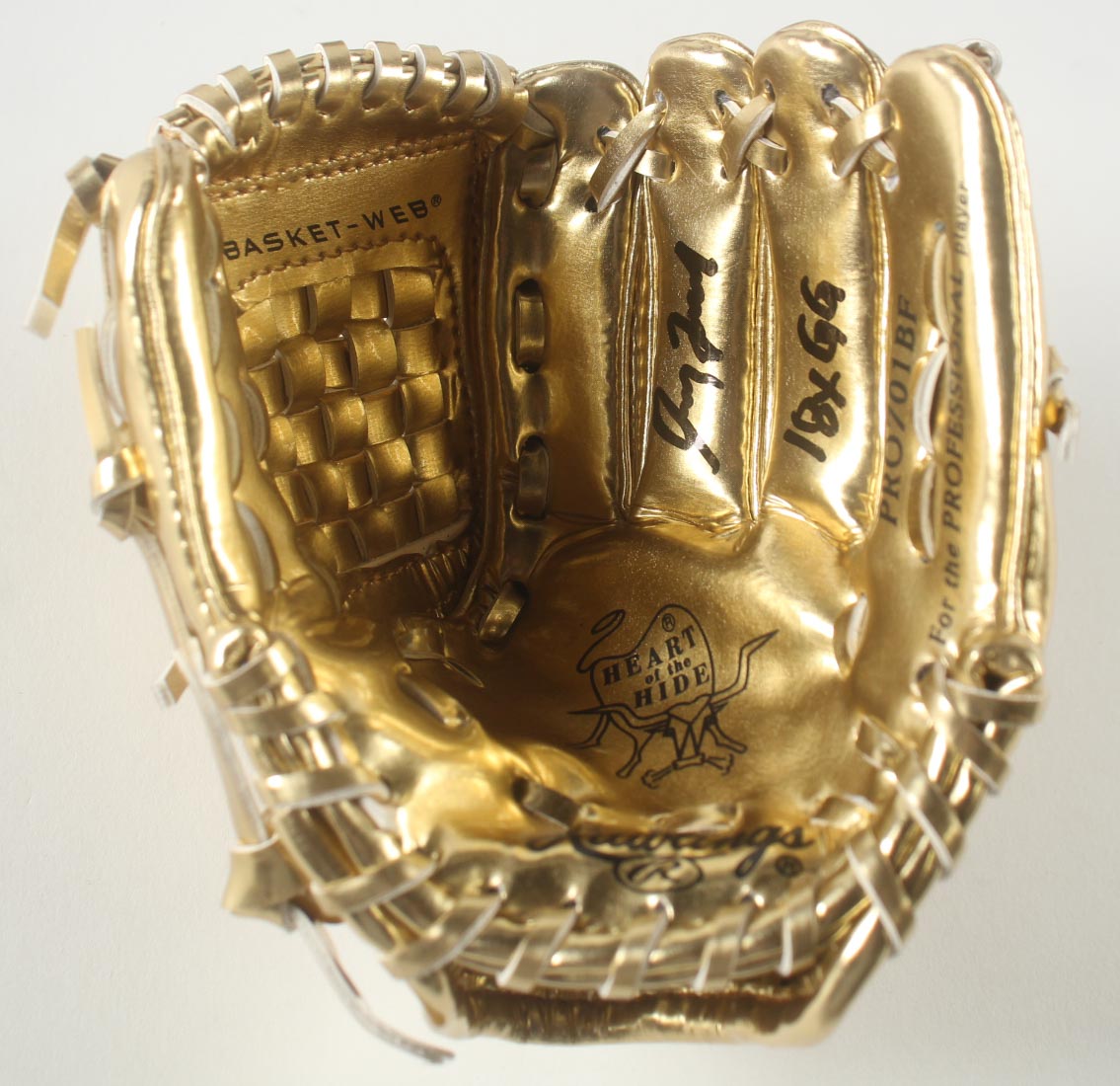 Rawlings Mini Golden Glove has been hand-signed and inscribed by Greg Maddux (Atlanta Braves, HOF). Please note, stand is included and it comes in the original box.