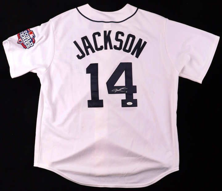 Majestic jersey with everything sewn on, size XL. Hand-signed by Austin Jackson (Detroit Tigers). Please note, there is staining on the front and back of the jersey. See photos regarding the condition of the item.