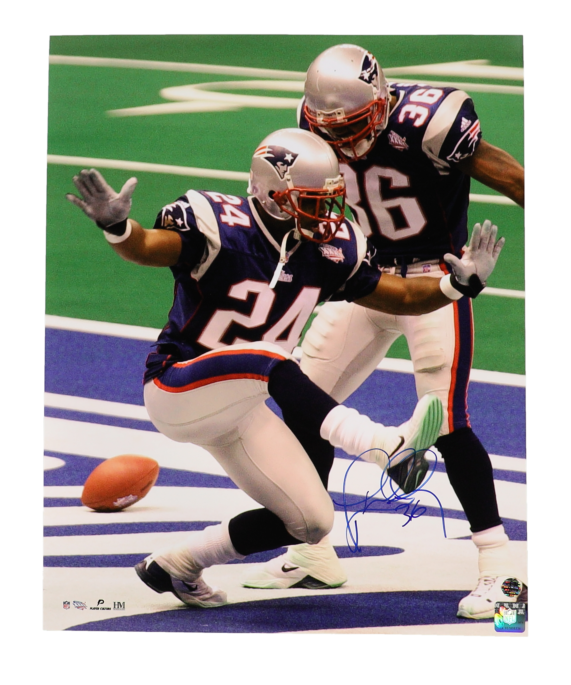 Photo measures 16" x 20" in size and has been hand-signed by Lawyer Milloy (New England Patriots).