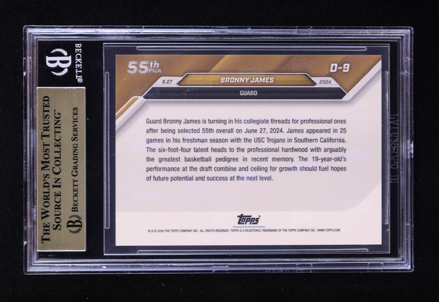 Bronny James 2024-25 Topps Now Draft #D9 RC (BGS 10)