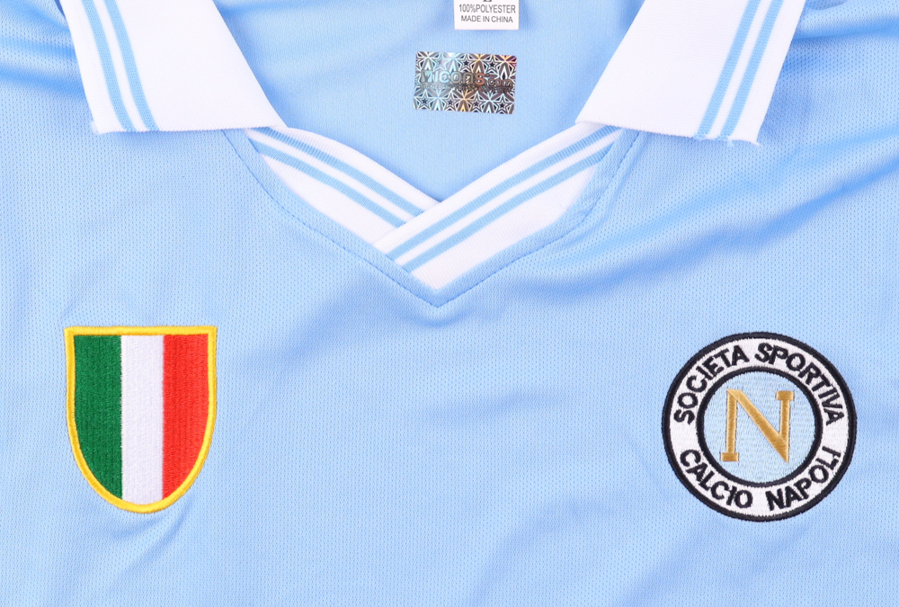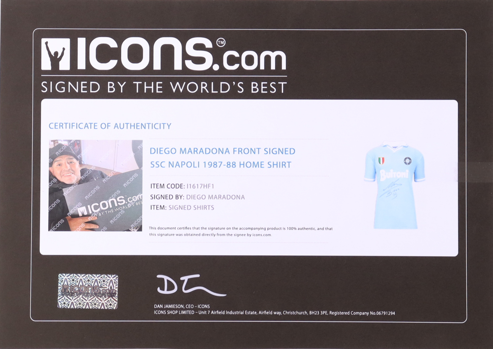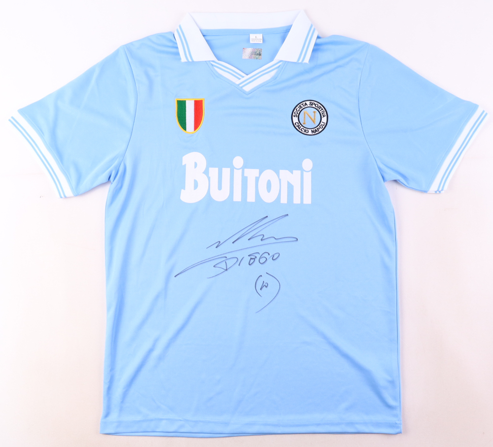 Custom style jersey with everything sewn/printed on, size L, has been hand-signed by soccer legend, Diego Maradona!