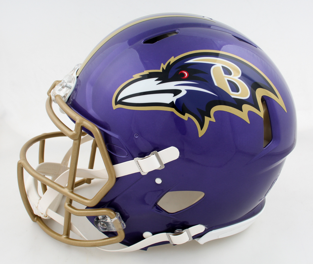 Riddell Baltimore Ravens full-size authentic on-field Flash Alternate speed helmet. Hand-signed by Derrick Henry.