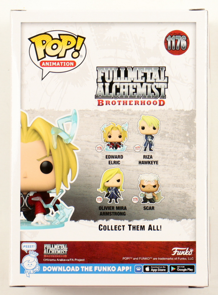 Vinyl figure measures approximately 4" tall and has been hand-signed on the packaging by Vic Mignogna (Voice of Edward Elric).