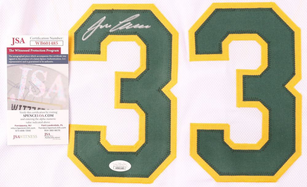 Custom jersey with everything sewn on, size XL. Hand-signed by Jose Canseco.