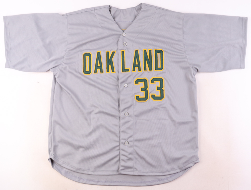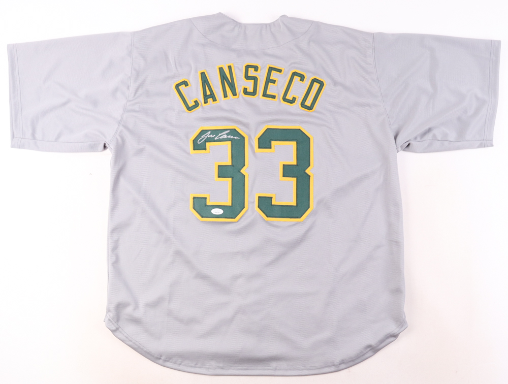 Custom jersey with everything sewn on, size XL. Hand-signed by Jose Canseco.