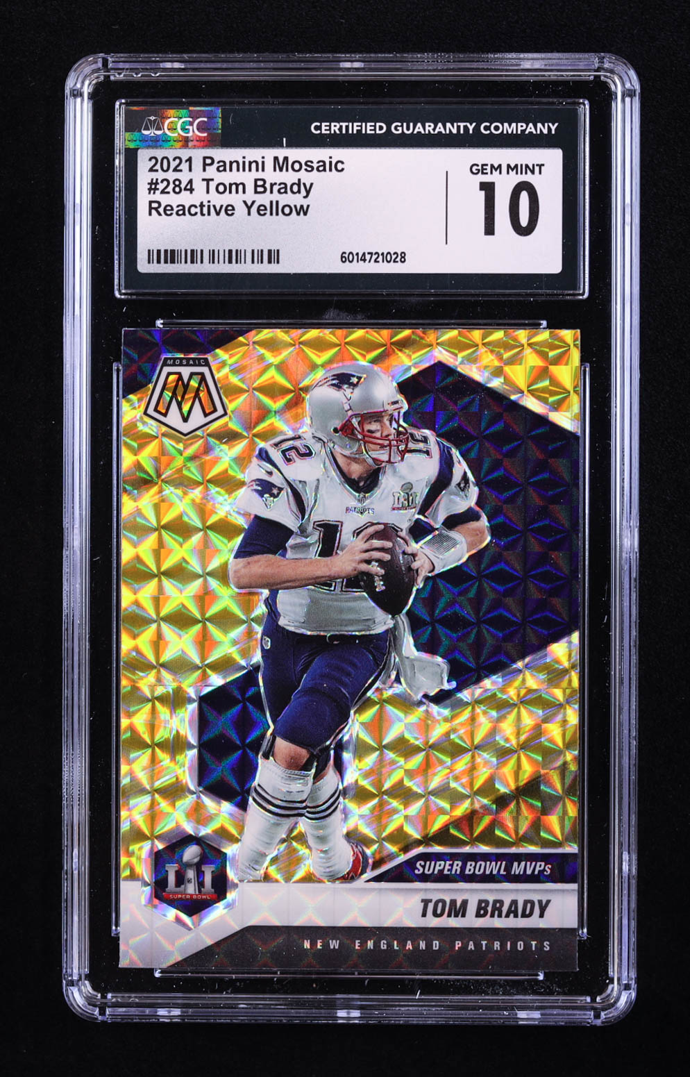 Tom Brady 2021 Panini Mosaic Mosaic Reactive Yellow #284 MVP (CGC 10)