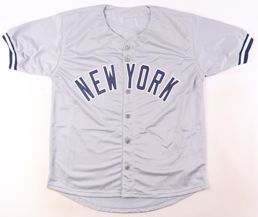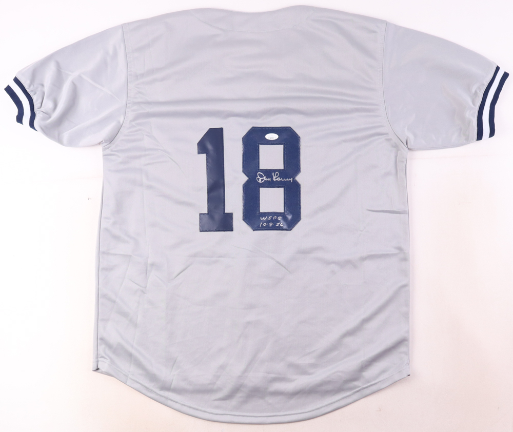Custom jersey with everything sewn on, size XL. Hand-signed and inscribed by Don Larsen (D. 2020).