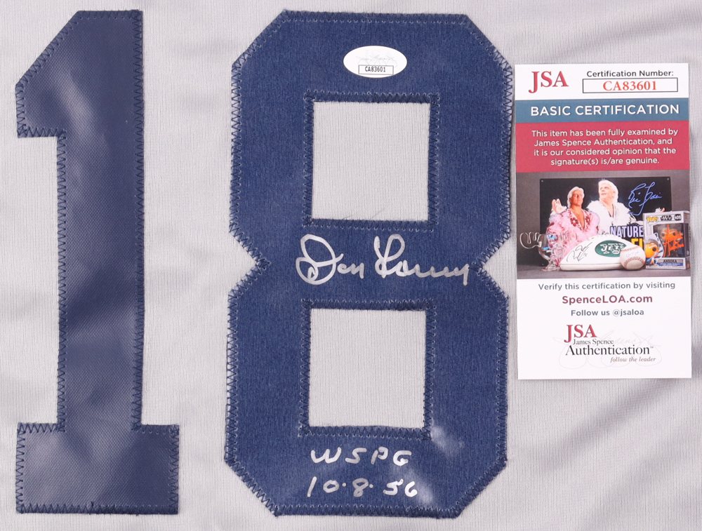 Don Larsen Signed Jersey Inscribed "WSPG 10-8-56" (JSA)