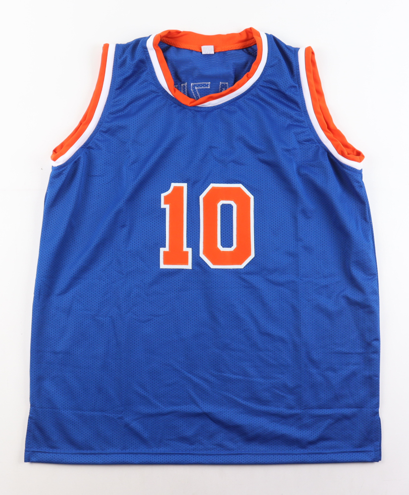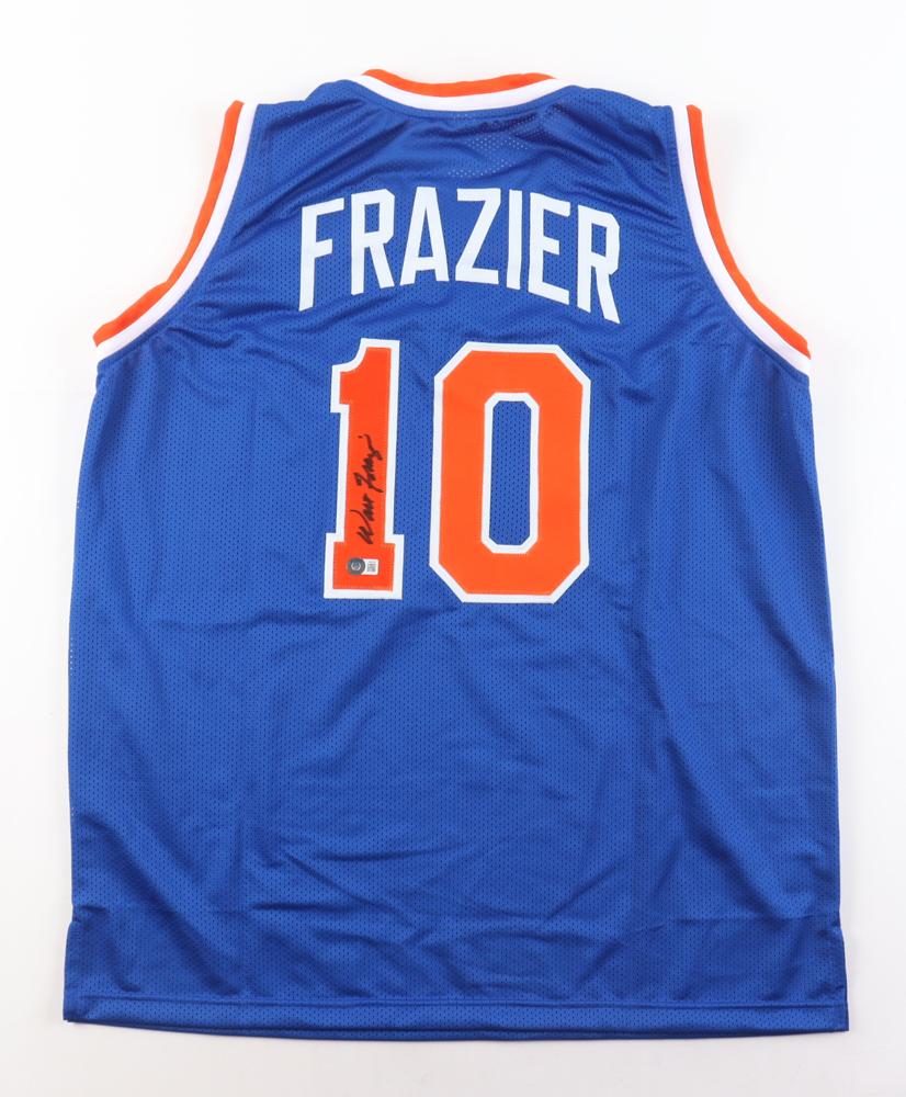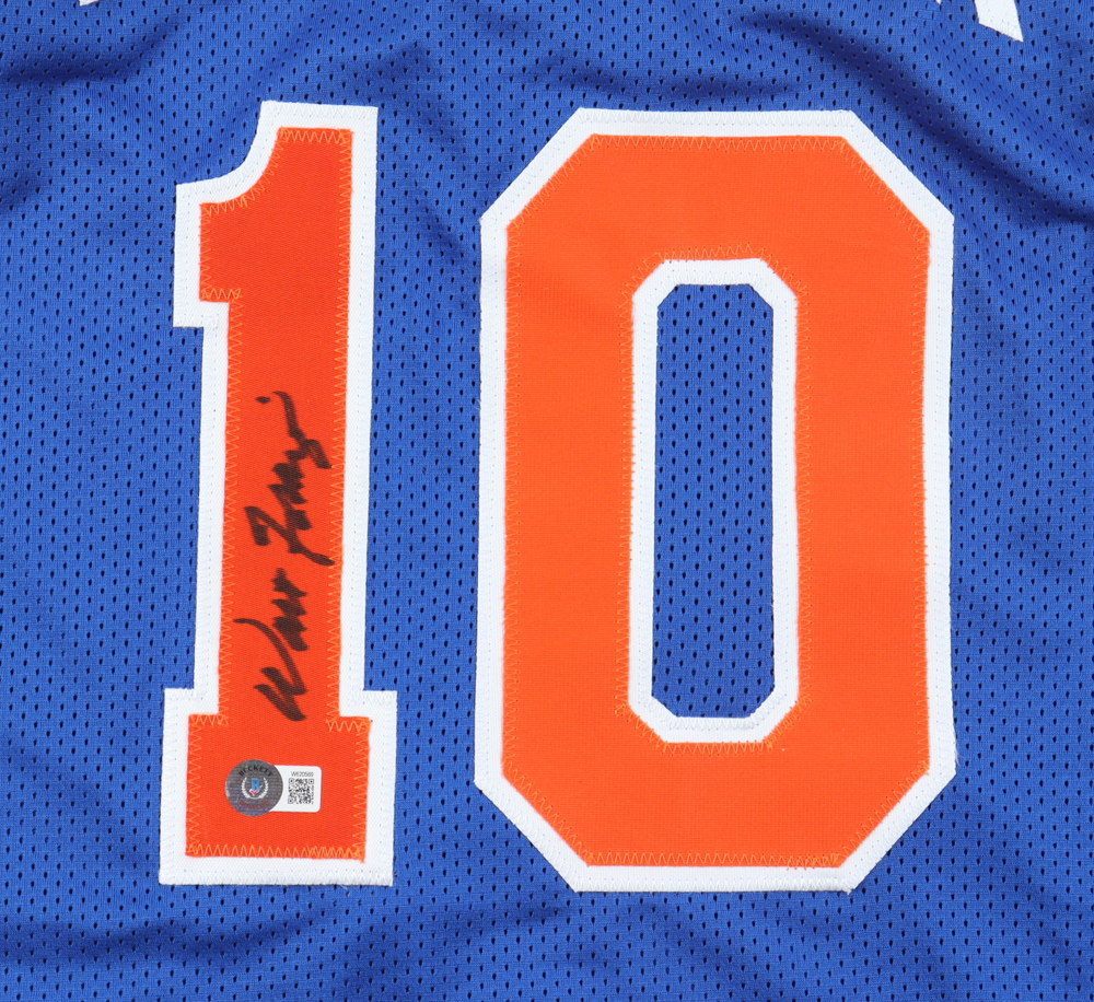Custom jersey. Everything sewn on, size XL. Hand-signed by Walt Frazier (HOF).