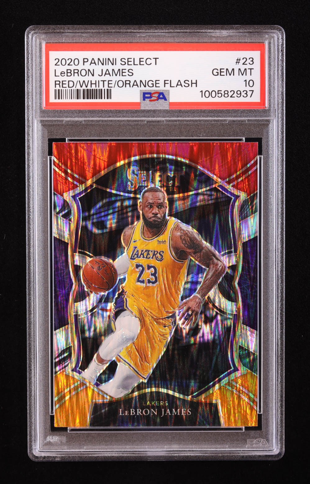 LeBron James 2020-21 Select Prizms Red White Orange Flash #23 (PSA 10)