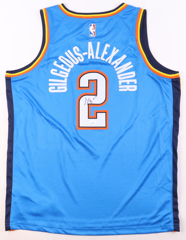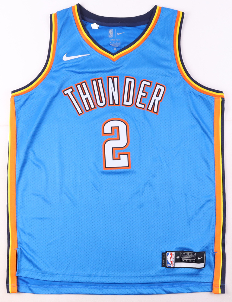 Nike jersey with everything pressed on, size 48. Jersey is hand-signed by Shai Gilgeous-Alexander.