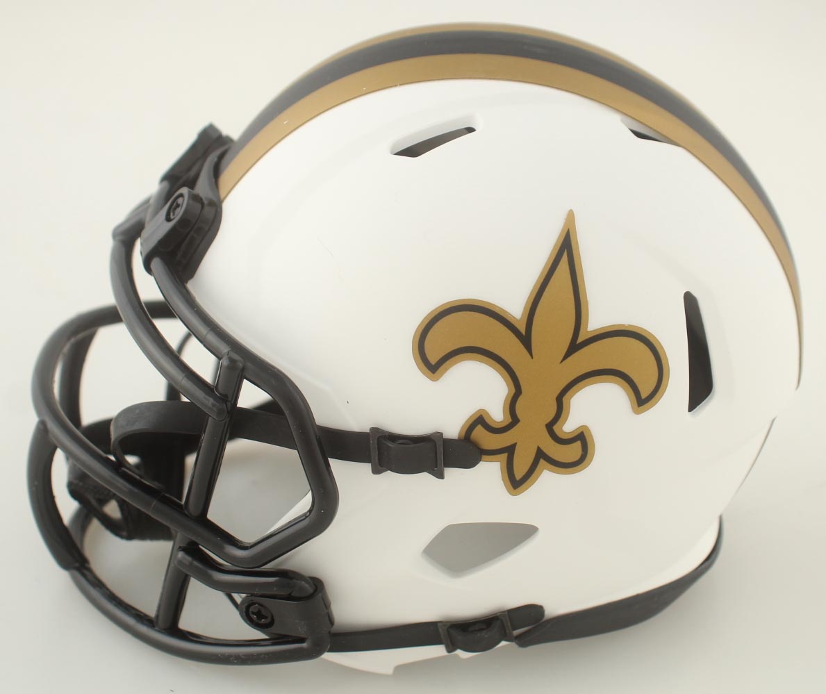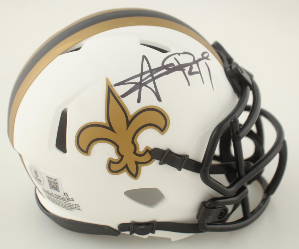 Riddell New Orleans Saints Lunar Eclipse Alternate Speed mini helmet has been hand-signed by Alvin Kamara.