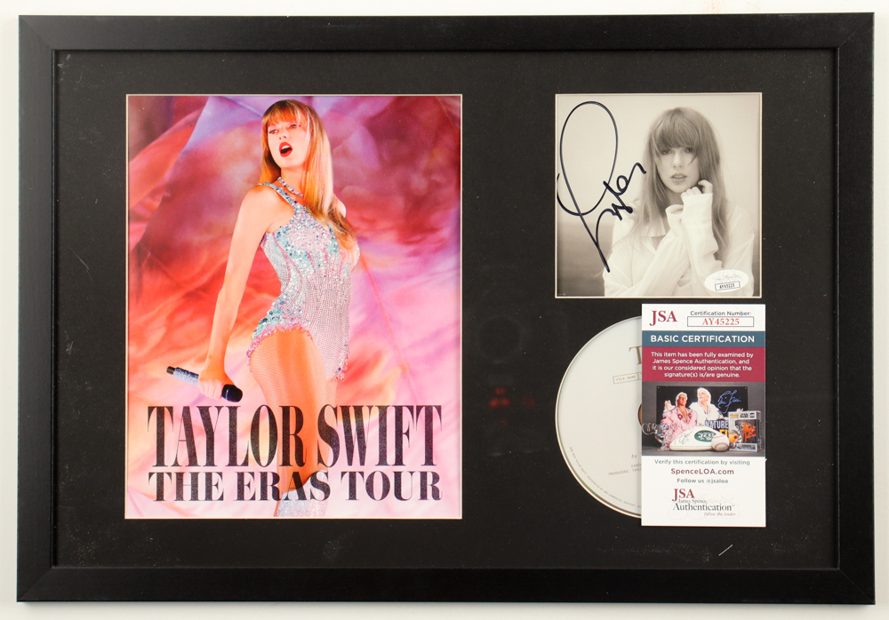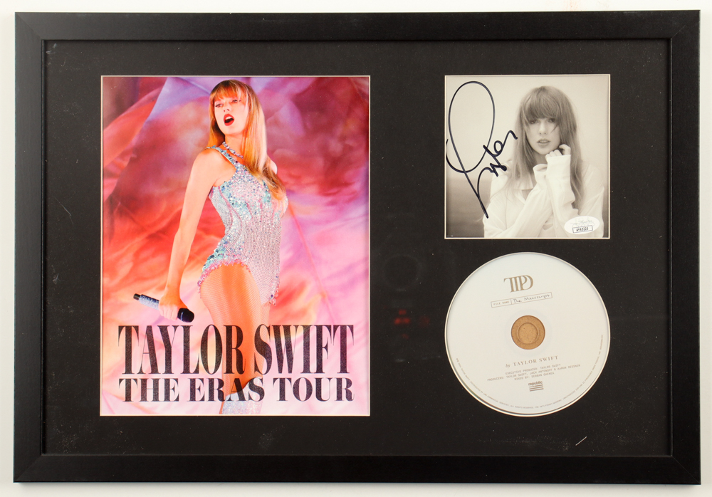 Custom frame measures approximately 13.25" x 19.25" in size. Features a "The Torture Poets Department" CD insert that has been hand-signed by Taylor Swift. The display also includes the disc as shown. Please note, there is scuffing on the display.