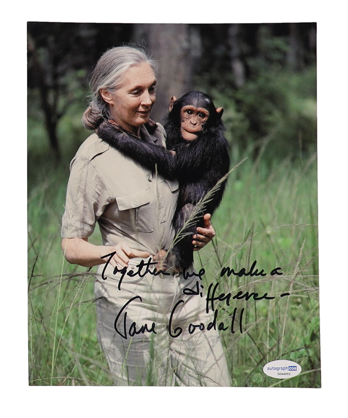 Jane Goodall Signed 8x10 Photo Inscribed "Together We Make A Difference" (AutographCOA)