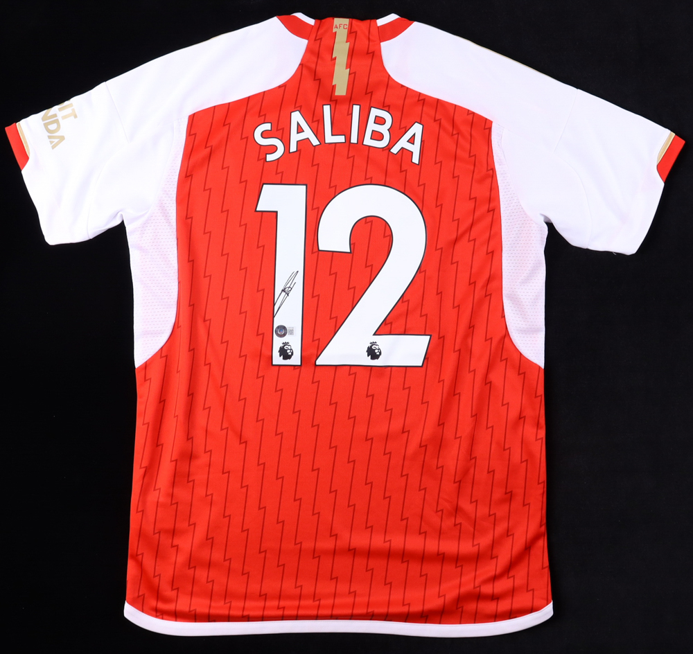 Adidas style jersey with everything pressed on, size L. Hand-signed by William Saliba.