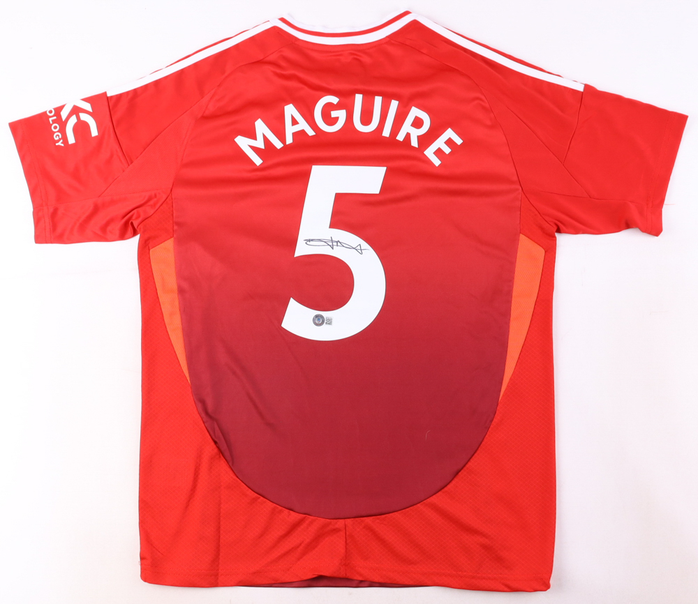 Adidas style jersey with everything pressed on, size L. Hand-signed by Harry Maguire.