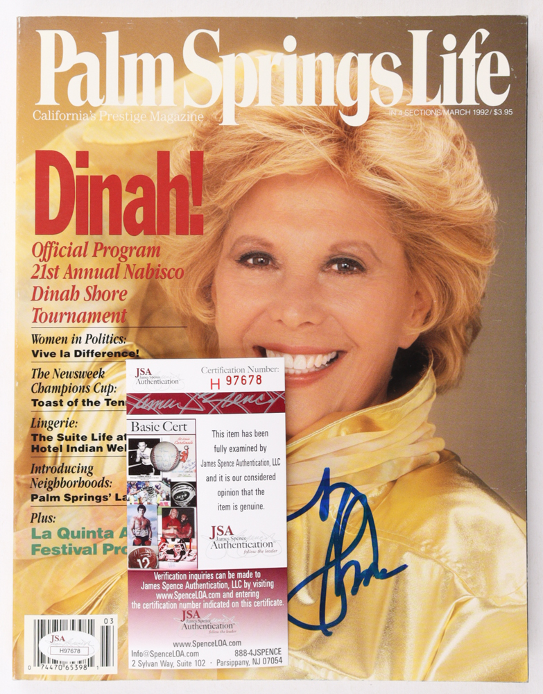 Dinah Shore Signed 1992 Palm Springs Life Magazine (JSA)