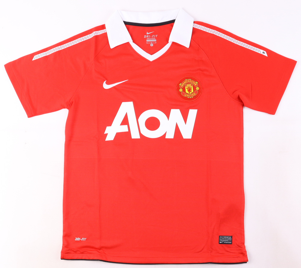 Nike style jersey with everything pressed on, size M. Hand-signed by Wayne Rooney (Manchester United).