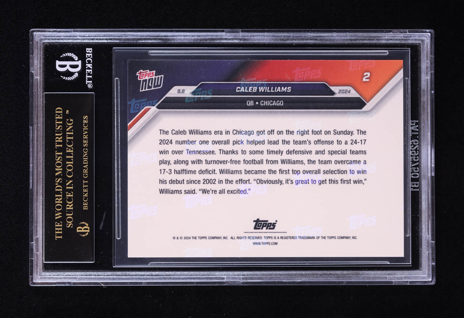 Caleb Williams 2024 Topps Now #2 RC (BGS 10 | Pristine Black Label)