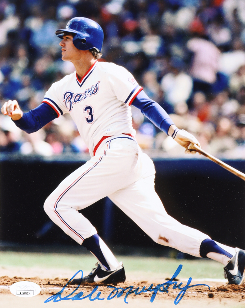 Photo measures 8" x 10" in size and has been hand-signed by Dale Murphy (Atlanta Braves).