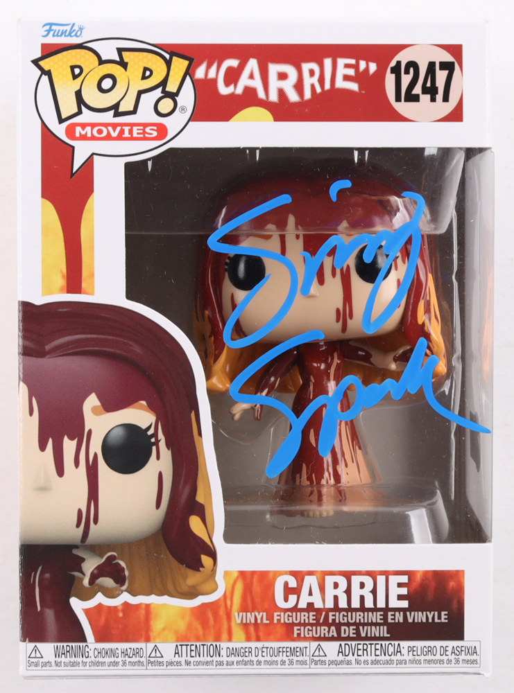 Funko Pop! figure measures approximately 4" tall. The packaging has been hand-signed by Sissy Spacek.