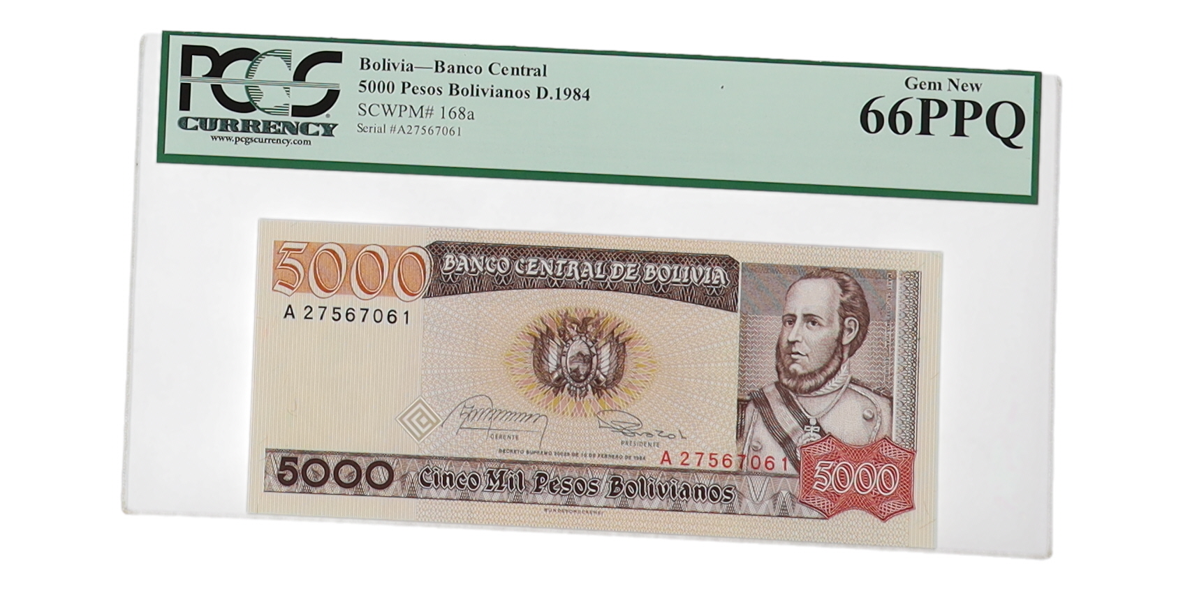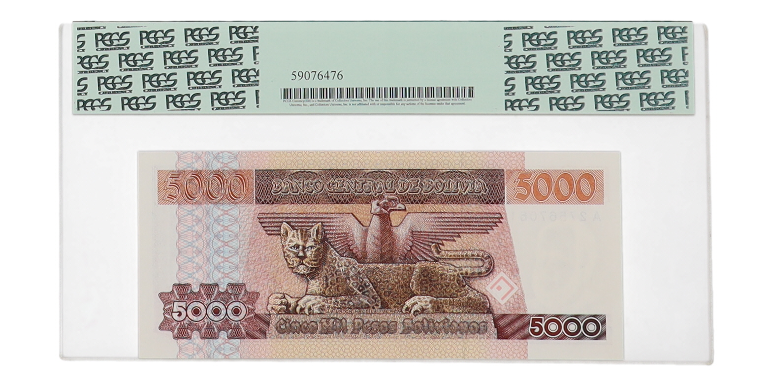 1984 Bolivia, Banco Central - 5,000 Pesos Bolivianos (PCGS GEM NEW 66PPQ)