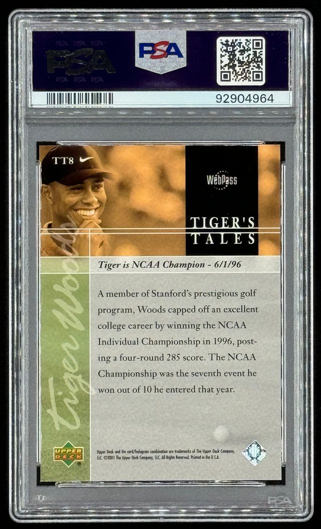 Tiger Woods 2001 Upper Deck Tiger's Tales #TT8 RC (PSA 9)