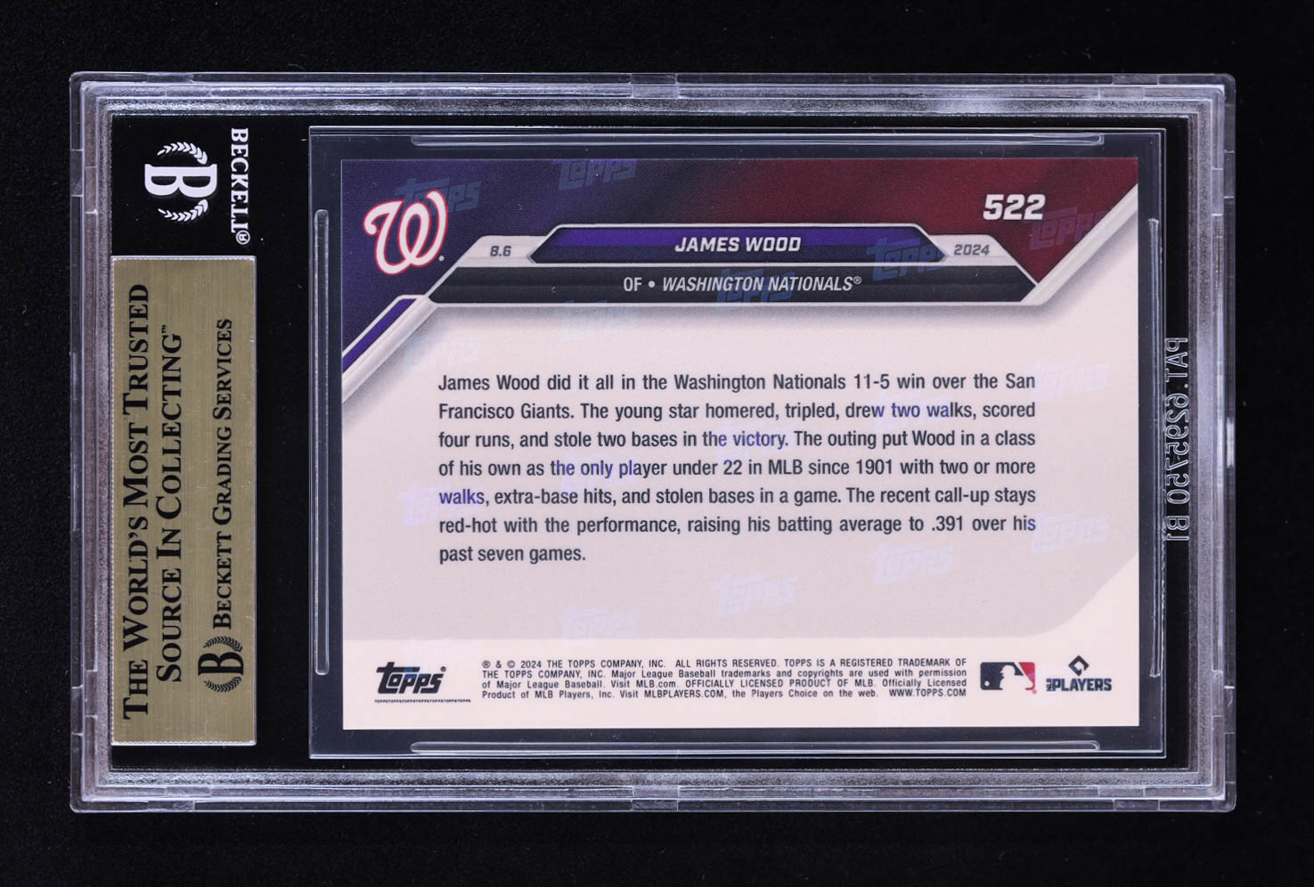James Wood 2024 Topps Now #522 RC (BGS 9.5)