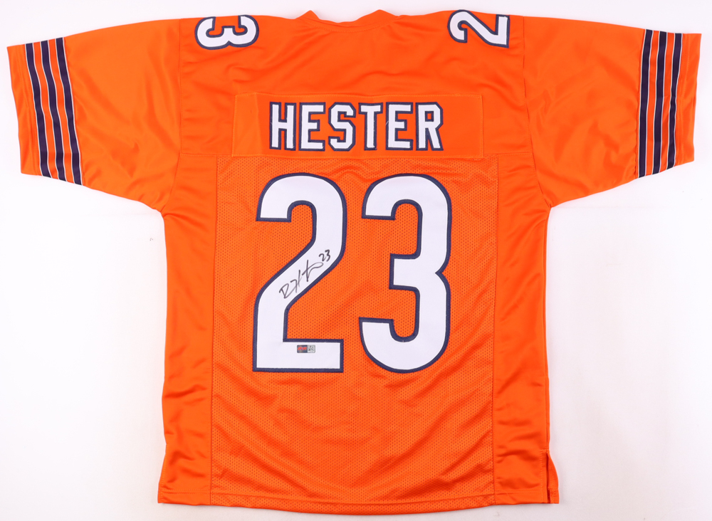 Custom jersey with everything sewn on, size XL. Hand-signed by Devin Hester (HOF).