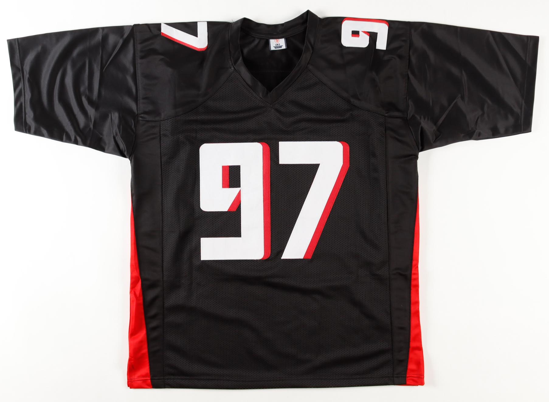 Custom jersey with everything sewn on, size XL. Jersey has been hand-signed by Grady Jarrett.