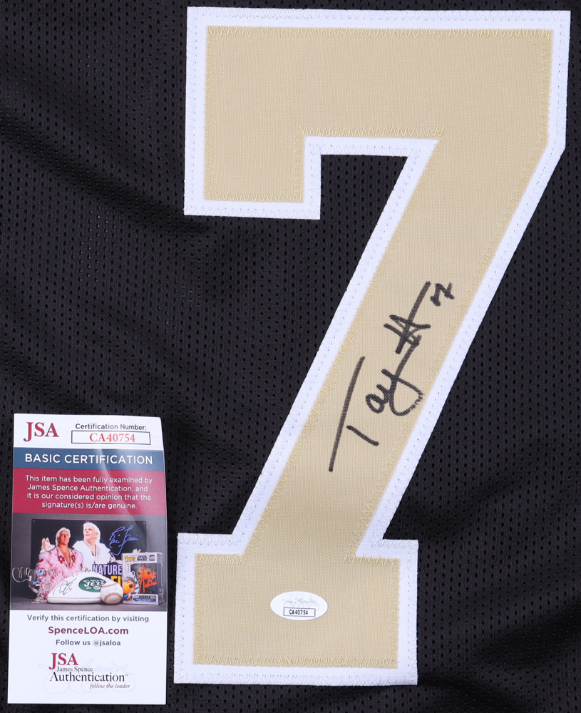 Custom jersey with everything sewn on, size XL. Has been hand-signed by Taysom Hill.
