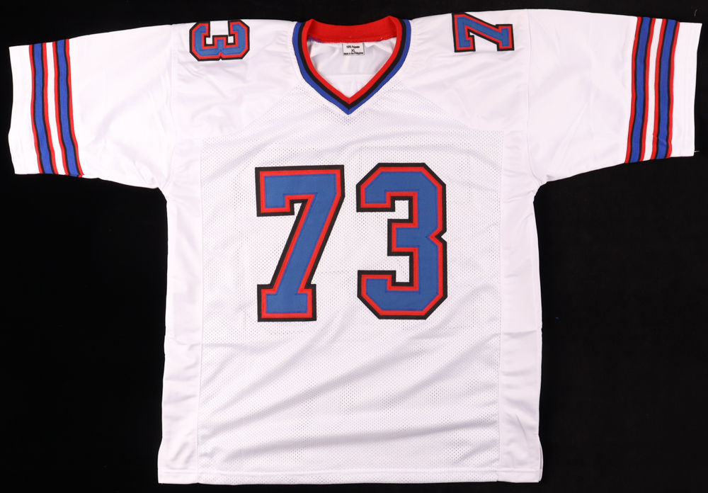 Custom jersey. Everything sewn on, size XL. Hand-signed by Dion Dawkins.