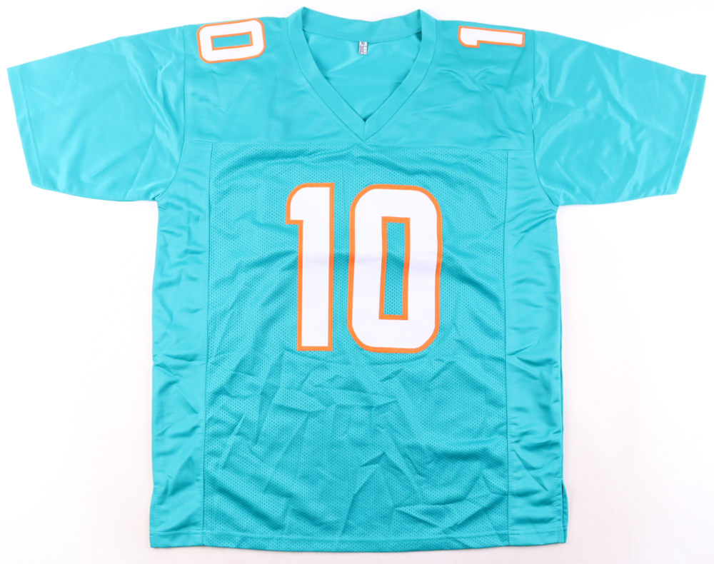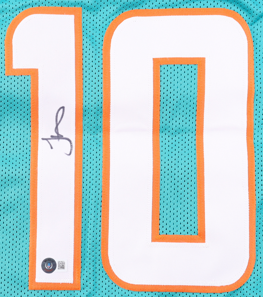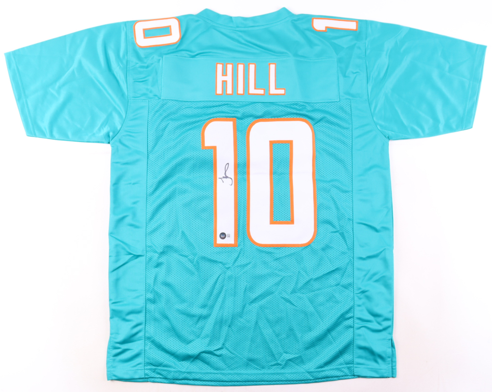 Custom jersey with everything sewn on, size XL. Hand-signed by Tyreek Hill (Miami Dolphins).
