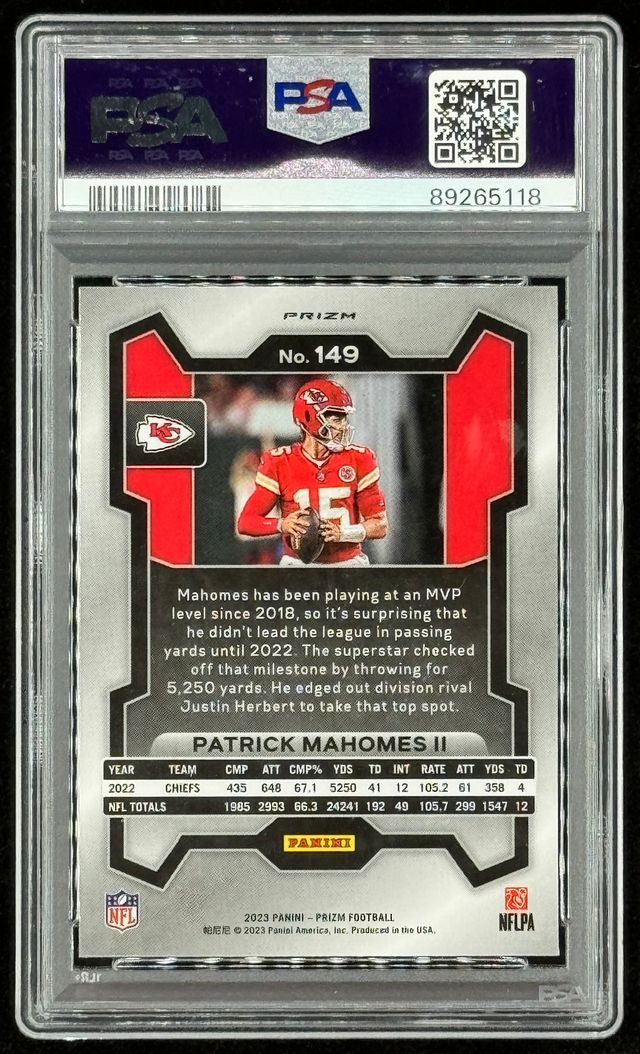 Patrick Mahomes II 2023 Panini Prizm Prizms Silver #149 (PSA 10)