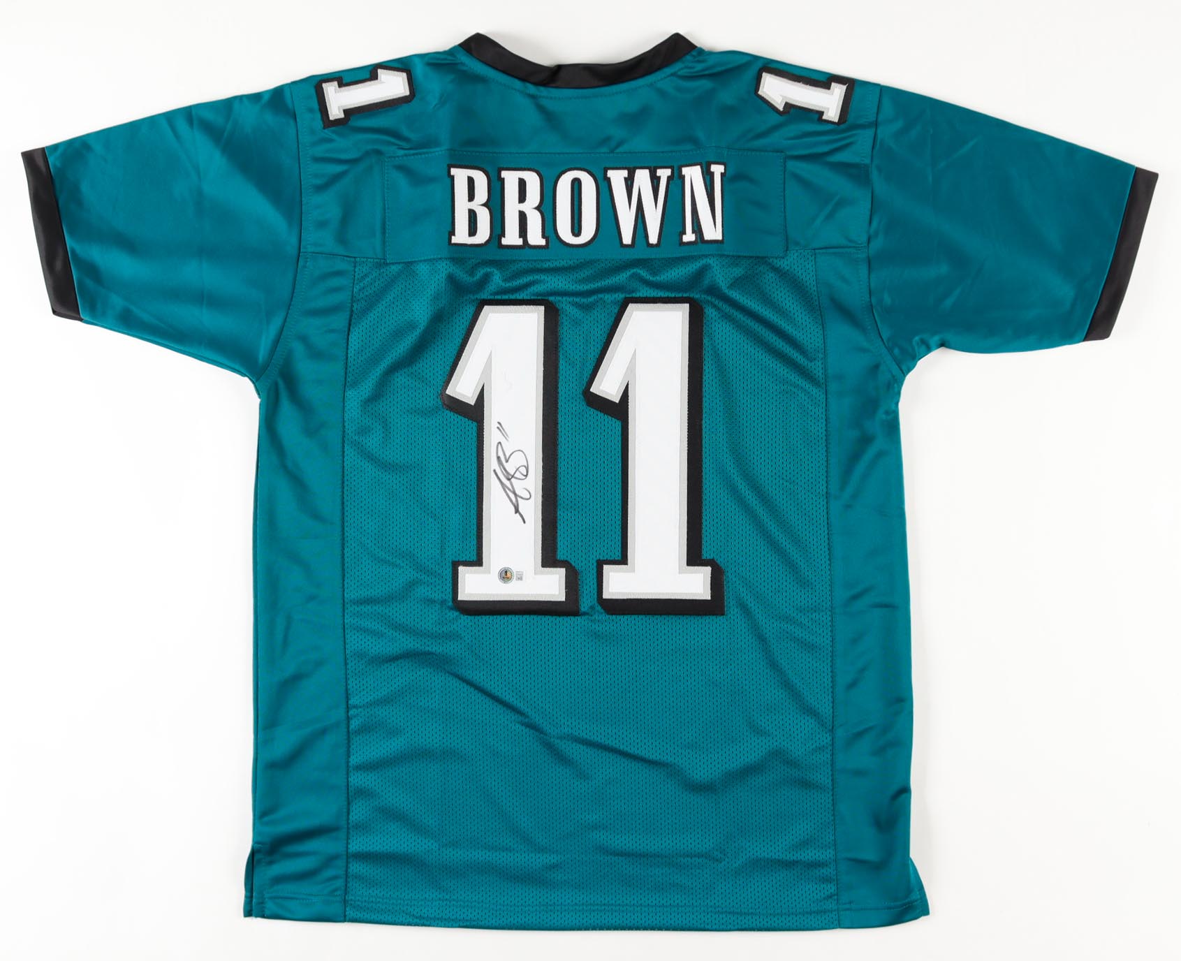 Custom jersey with everything sewn on, size XL. Hand-signed by A.J. Brown.