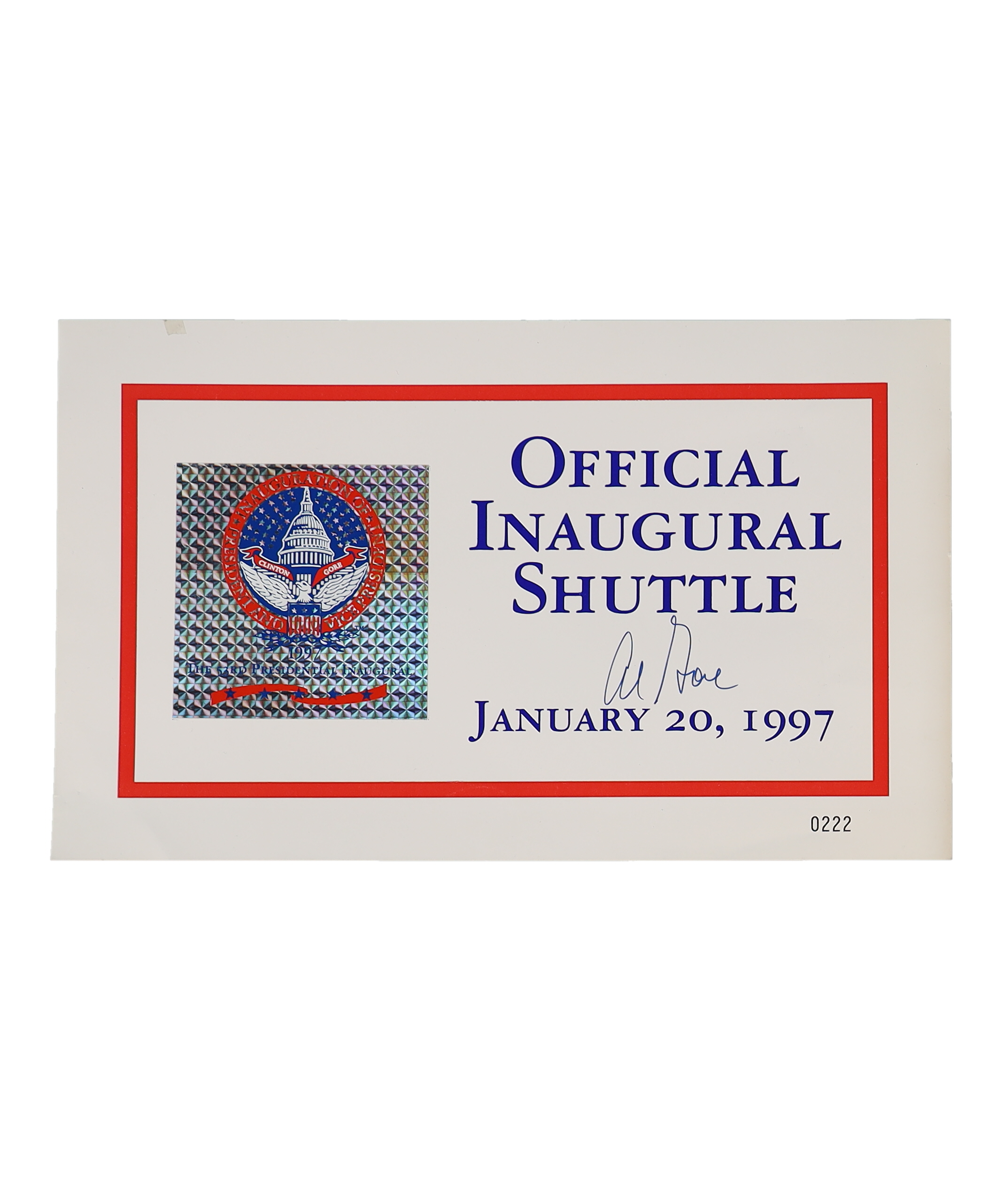 Al Gore Signed 1997 Presidential Inaugural Shuttle Sign (JSA)