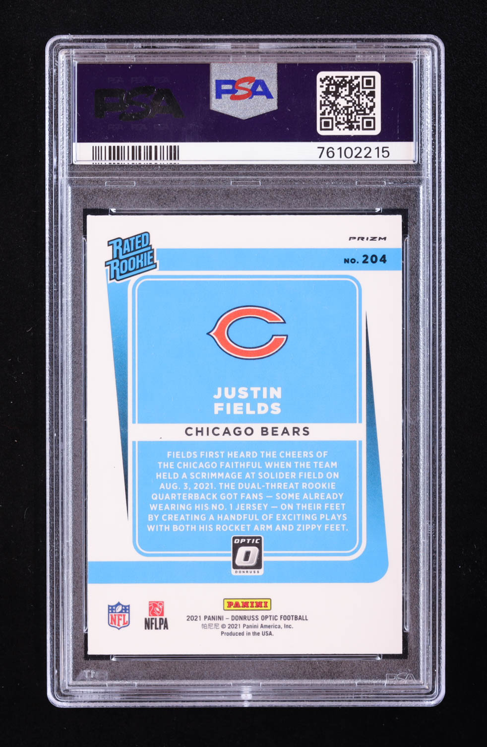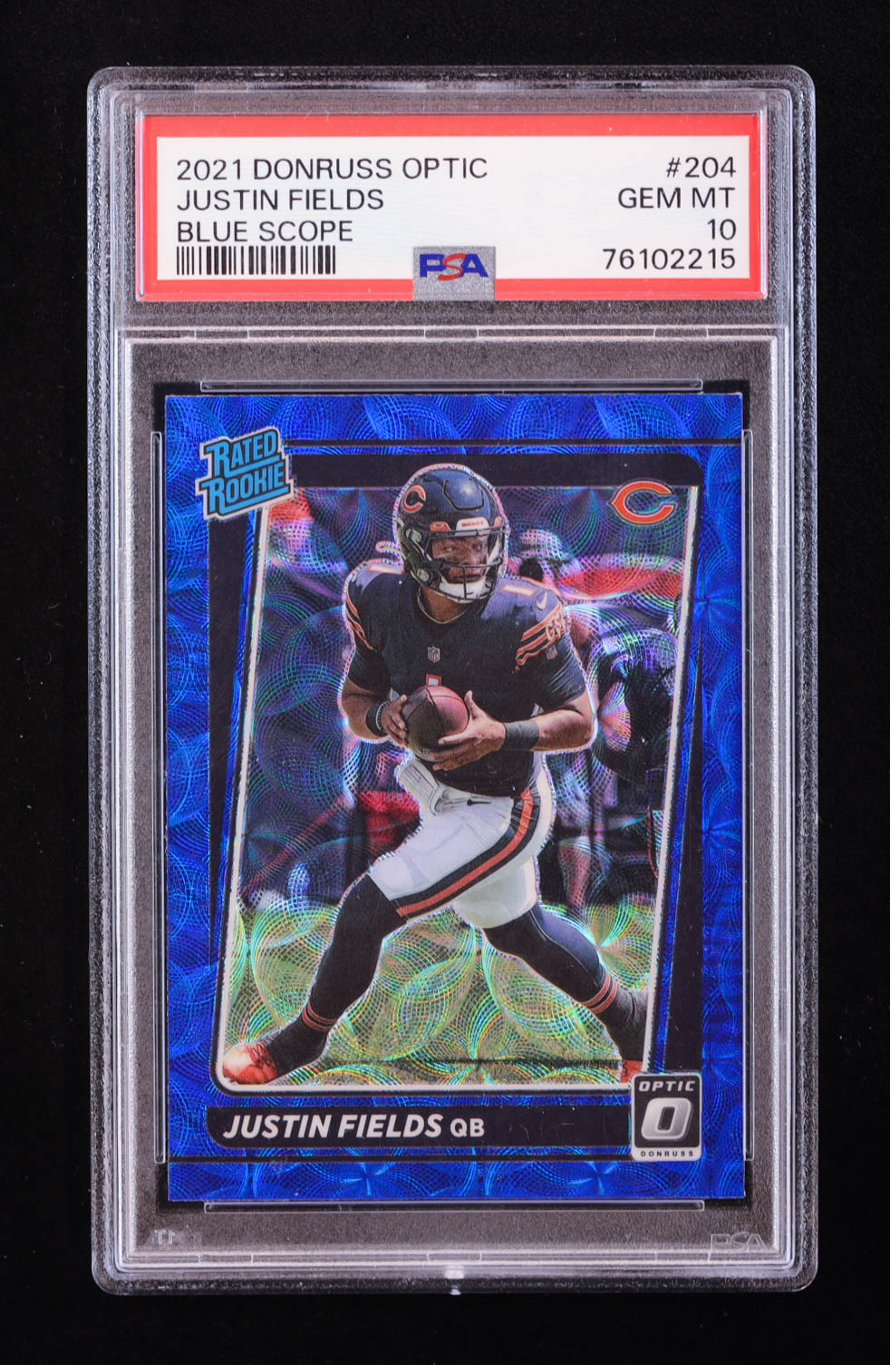 Justin Fields 2021 Donruss Optic Blue Scope #204 RR RC (PSA 10)