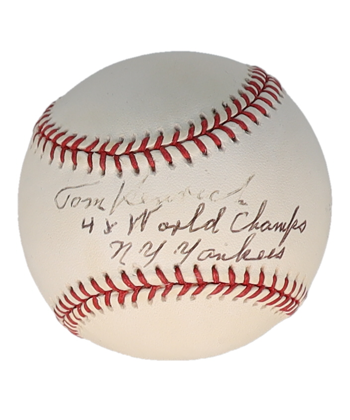 Tommy Henrich Signed OAL Baseball Inscribed "4x World Champs NY Yankees" (JSA)