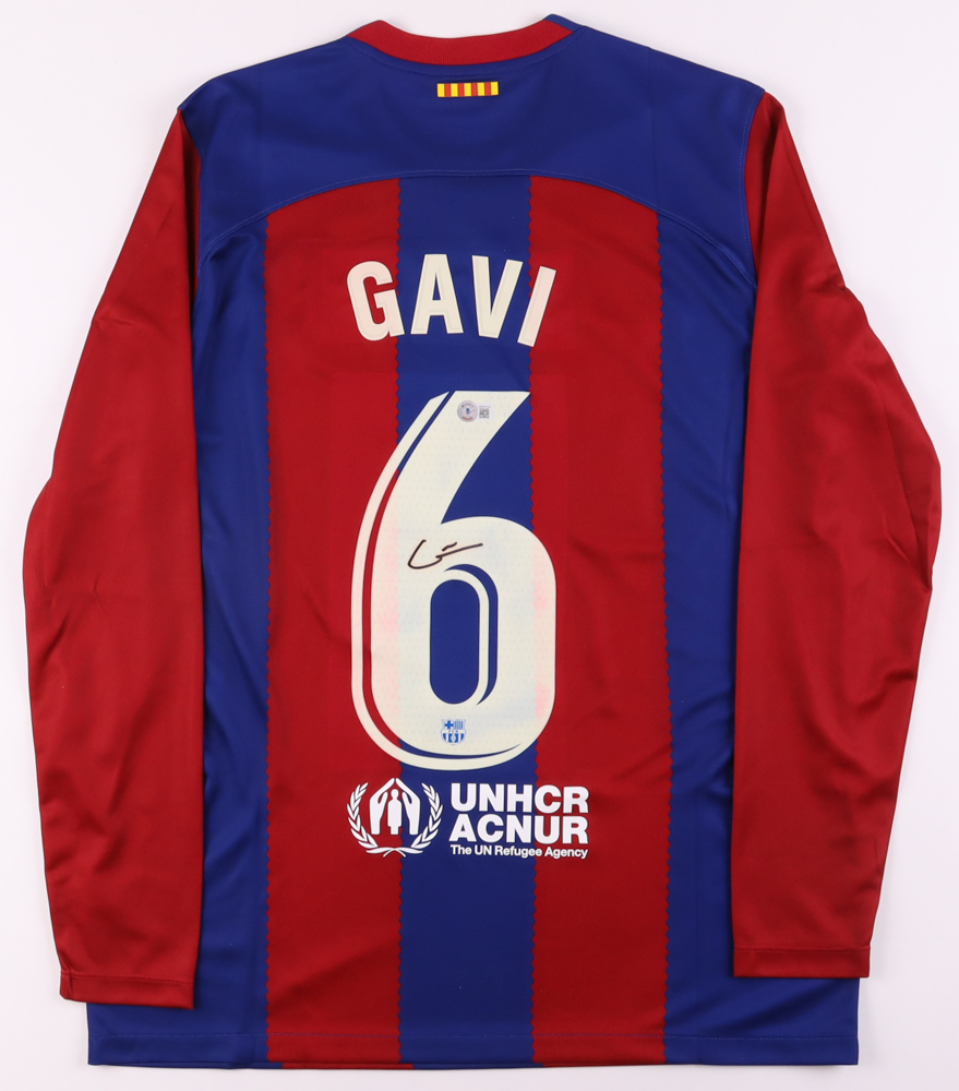 Nike jersey. Everything printed on, size L. Hand-signed by Gavi. Please note, the signature has bled and glue is visible through the reverse number.