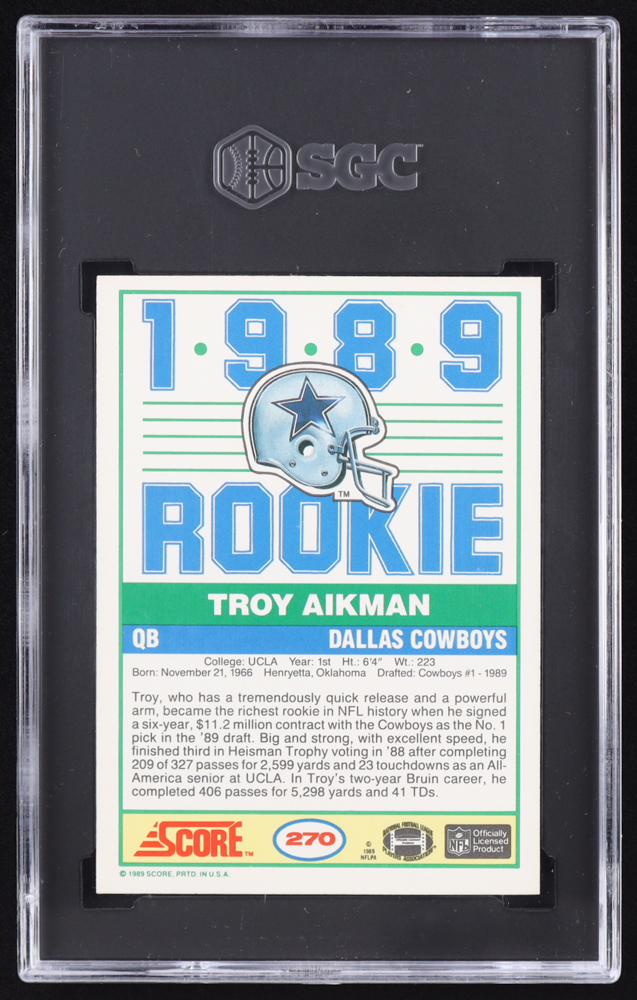 Troy Aikman 1989 Score #270 RC (SGC 8.5)
