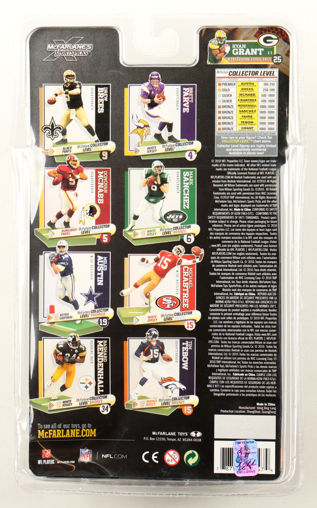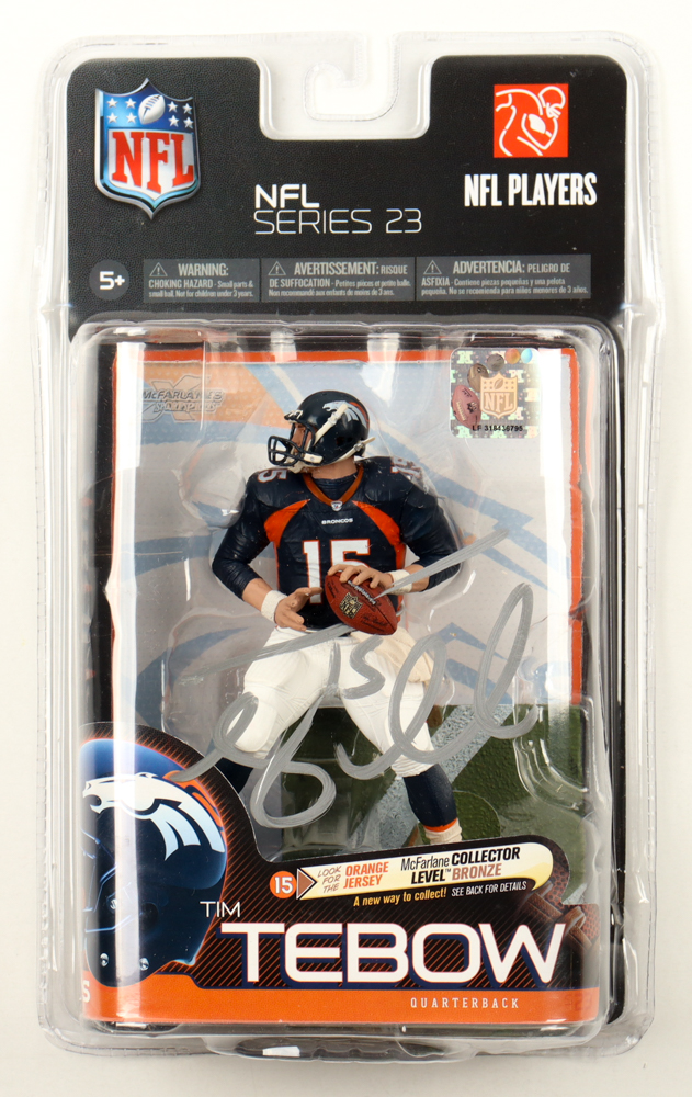 2010 Football NFL Players Series 23 action figure. Hand-signed by Tim Tebow (Denver Broncos). Please note, there is some creasing on the packaging.