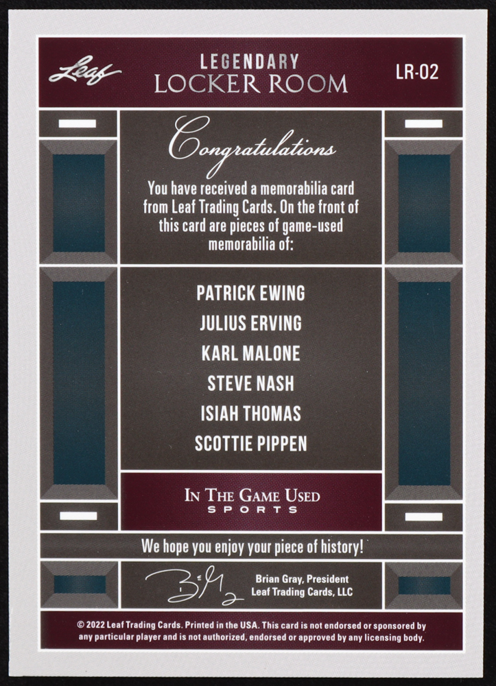 Patrick Ewing / Julius Erving / Karl Malone / Steve Nash / Isiah Thomas / Scottie Pippen 2022 ITG Used Sports Legendary Locker Room Red Pattern #LR02 #18/35