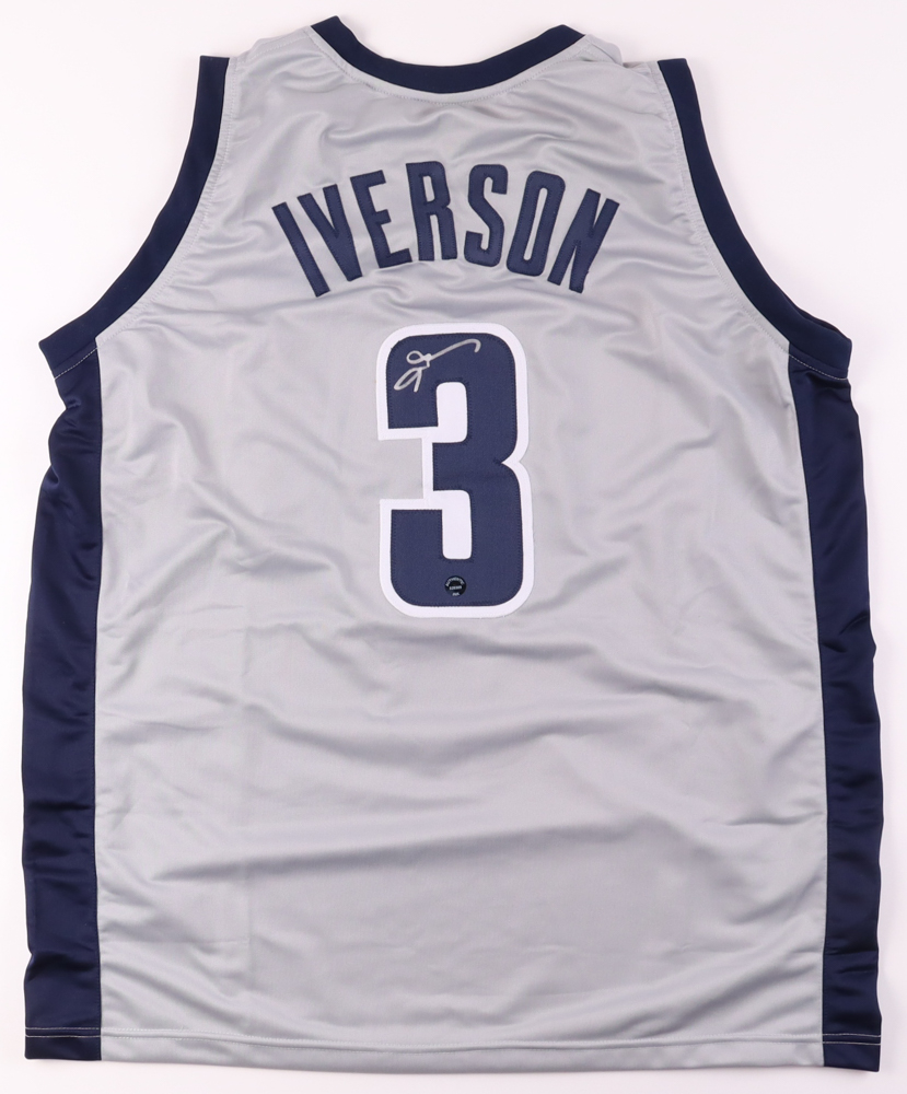 Custom jersey with everything sewn on, size XL. Hand-signed by Allen Iverson (HOF).